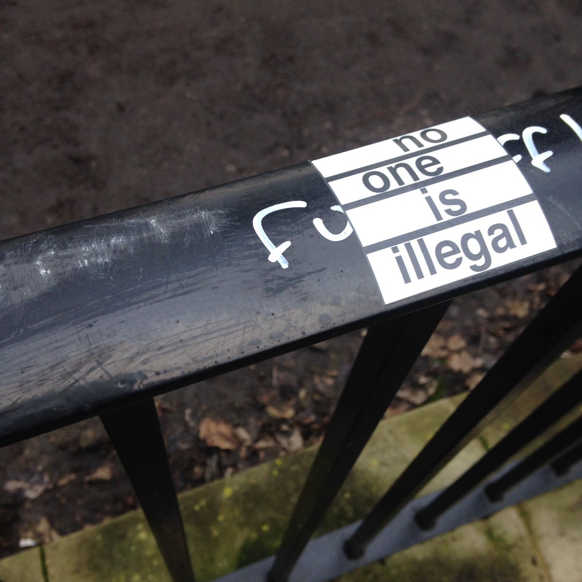 6. Separations help understand ourselves like breaking a word where it is sutured; mean time. Alien nation. Poets do this. To overcome separation is something that I need to do in order to breathe. It is hard. It is hard because it is in us. The Prime Minister says: if you believe you’re a citizen of the world, you’re a citizen of nowhere. We take it up into our mouths to say this. I say, back, I’m a citizen of the world, I say I’m not a citizen, back. And I lie. And I lie here and I say it. On the 20th of September it began. On the 13th of December it was completed. It was completed, the wall that is in Calais, though it has not yet been described as beautiful. No Borders, say it a hundred times and more, is not simply a demand but also a fact. In those who jump, who fly, who walk, who are carried by water. Who hide, who slip, who keep quiet. It is hard because in a very little breath they must say what makes it hard to breathe. As if one could separate the lungs; one lung to breathe, and one to speak. The truth of no borders exists in a unity that it’s easy to miss.
