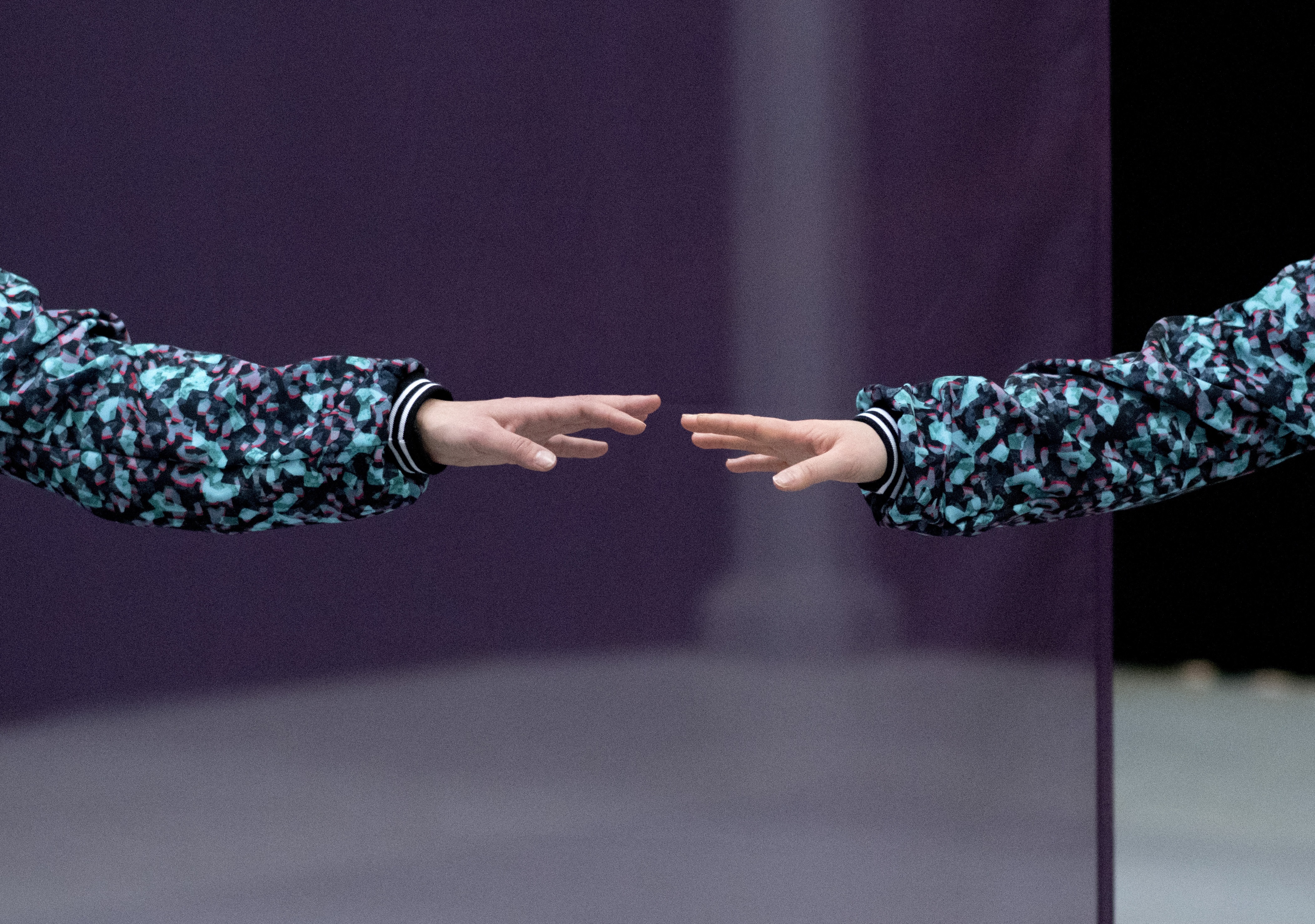 Mass invites consideration of all these ideas related to community and, as Clark phrases it, the difficulty, irony even, he is working with is that “as soon as you create an us, you create a them”. The ensemble choreographic work has been taking shape through the ongoing abominations of drone strikes, civil war and mass displacement that have resulted in so many documented and undocumented deaths of refugees, the rise and fall of the Calais refugee camp, and a clenching to nationalism that in places expresses as Nazism. For me – although this is my interpretation, and may not be what Clark intended – an acknowledgement of that horror is embedded in the heart of Mass: a central sequence, tense and aggressive, volume rising on the industrial soundtrack, in which bodies are cramped together and torn apart. At the risk of sounding facetious, a local association this brought up for me was of being trapped on the London underground at commuter hour: the normal daily assault on the body inflicted by capitalism. But human behaviour in that ordinary setting, the tendency people have to lose themselves in their mobile phones, is part of Clark’s interest too. Is our ability to connect with others, to empathise, to care, eroded by our absorption into these tiny screens? For some – people socially disabled because their body or brain doesn’t conform to narrow and prescriptive ideas of “normal” – finding a community online is a route out of isolation. There are no simple answers here.