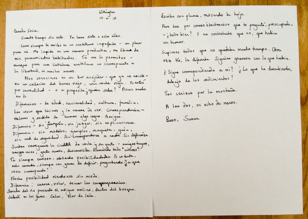 I write to you as ever in my imperfect Spanish: a pleasure for me: its impedance as liberating as its possibilities. You, making allowances, as a Catalan the Spanish language doesn’t correspond to liberation.